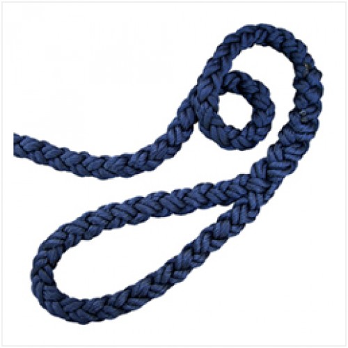 Square line, eight strand high tenacity polyester single braided rope, double twisted (constructed from yarns with two twisting operations), without core.