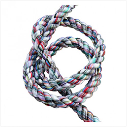 Multicolour three strand rope.